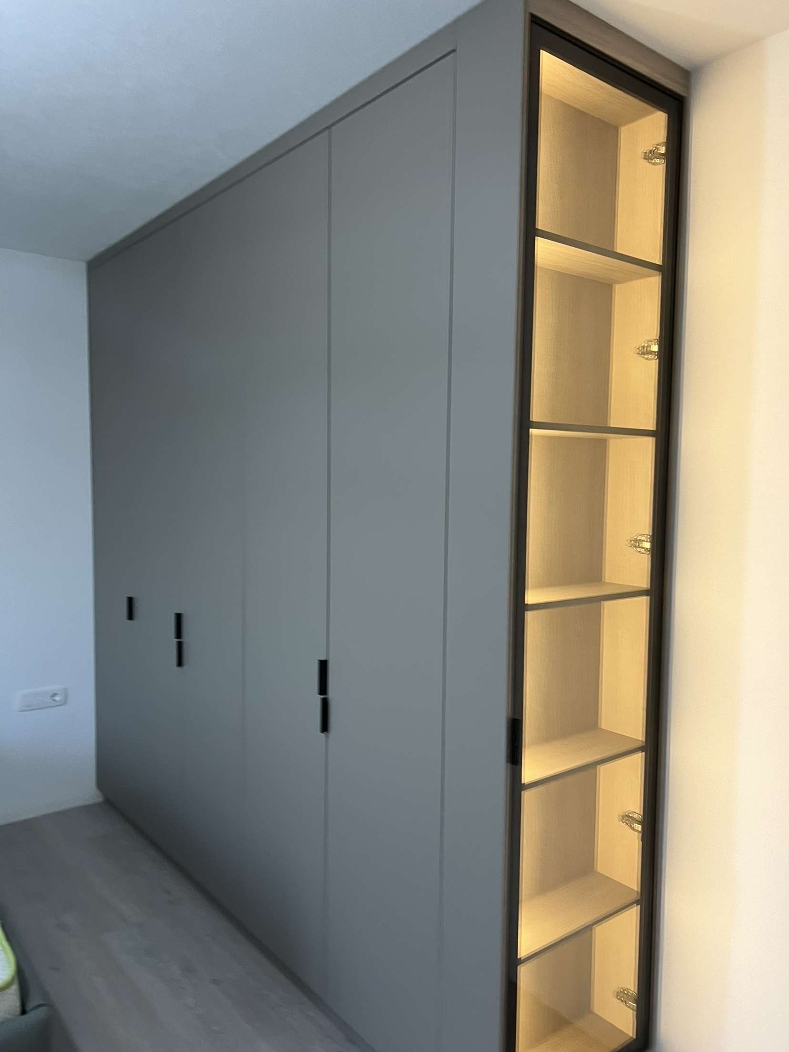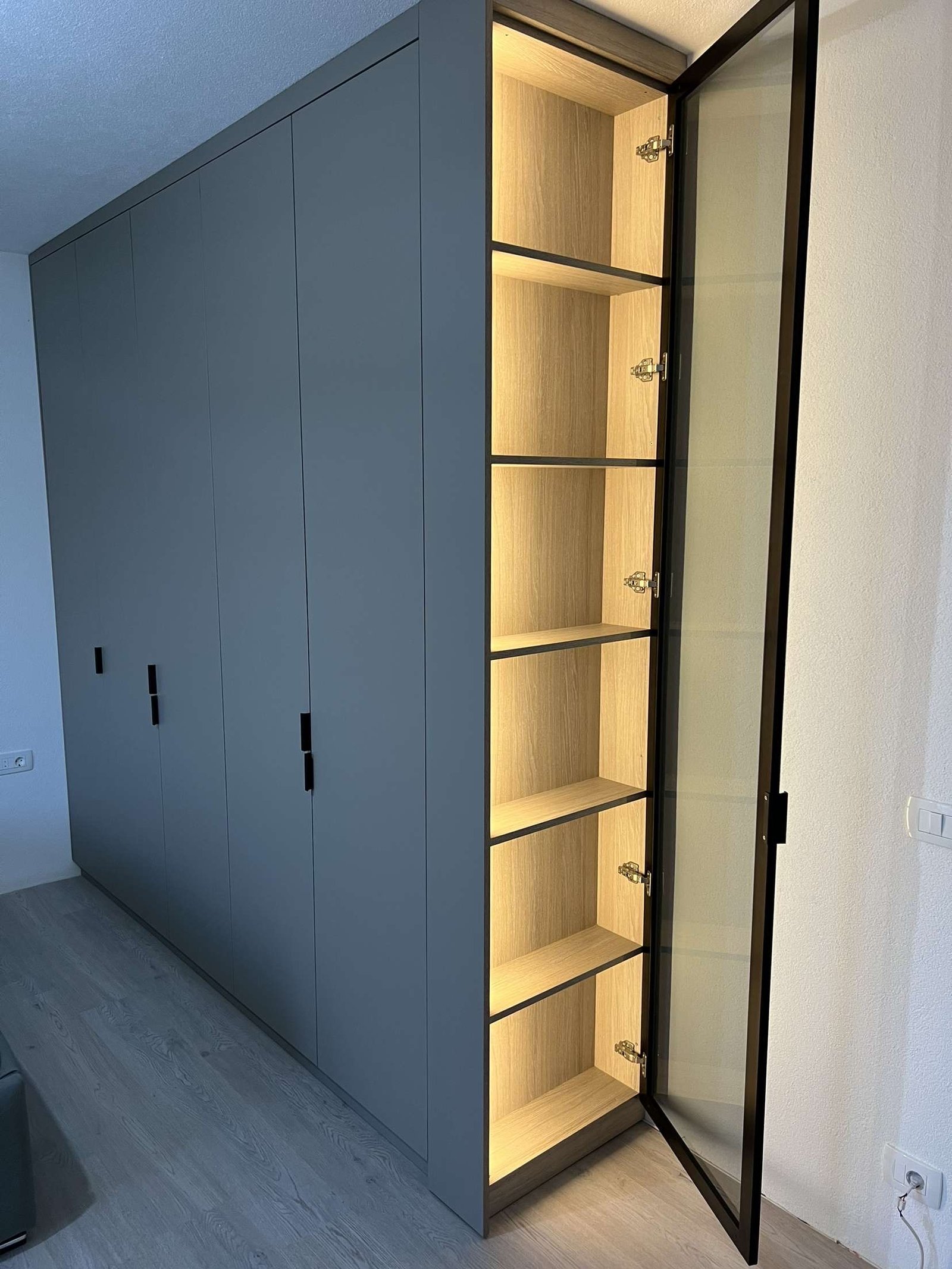 Dizajn “Floor-to-Ceiling”: Dollapi shtrihet nga dyshemeja deri në tavan, duke shfrytëzuar çdo centimetër të hapësirës dhe duke u integruar plotësisht me arkitekturën e dhomës.